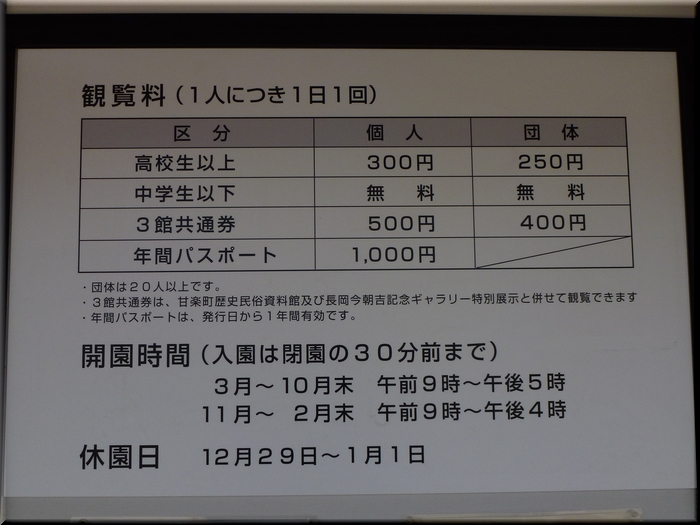 「園内案内図」・「観覧料」
