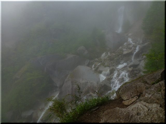 「白糸の滝」・「五色の滝」の順にモヤモヤと観瀑。