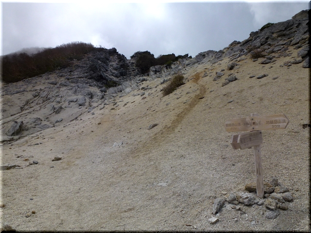 不気味な案内板を横目に、九十九折りに標高を稼ぐ。