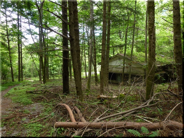 現在は旧道となる林道を通って「青木鉱泉」へ。