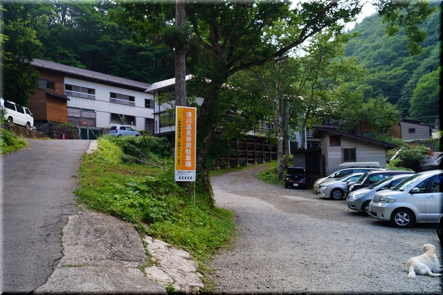 滝見客は旅館200m手前のスペースが駐車場となる。