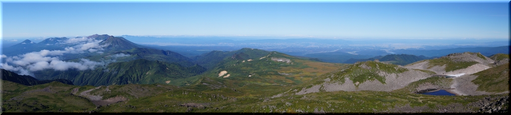 北方に大雪山旭岳、さらに石狩山地と絶景が広がる。