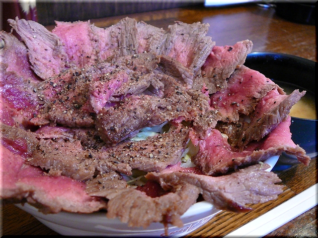 胡椒と特製タレがまた、レア肉の旨味を引き出してます( ̄∀ ̄