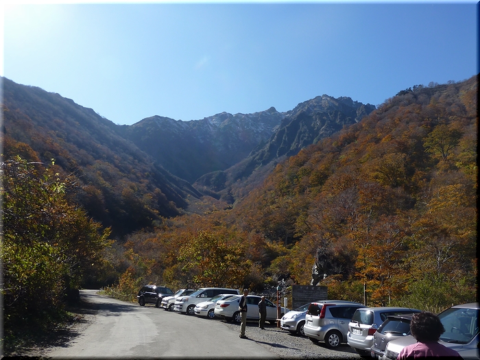 ここに車を停めて徒歩で「登山指導センター」近くまで下り、