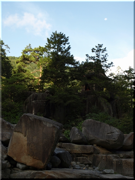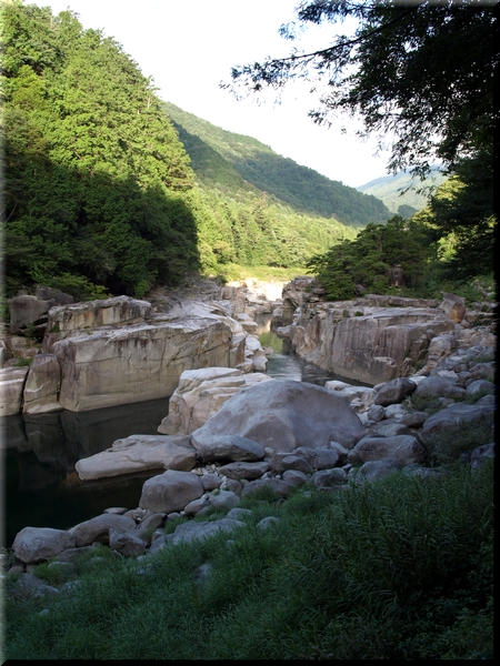 ・ 木曽川の川面を飾る粗暴でいて端麗な岩場を眺める