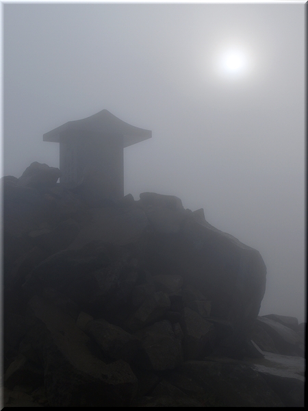 ・ 山頂に安座する磐梯明神を太陽がかすかに照らす