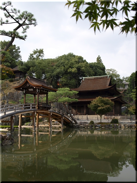 ・ 臥龍池に掛かる無際橋と対岸に建つ観音堂を眺める