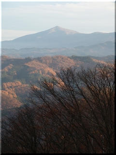 ・ 朝日によってほんのり赤らむ岩手山を望む