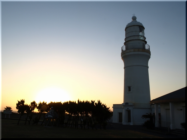 ・ 御前埼灯台とともに太平洋に浮かぶ日の出を眺める