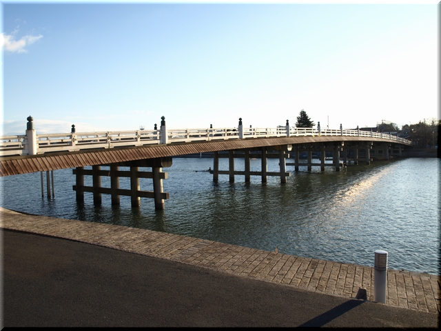 ・ 琵琶湖大橋東岸から雪化粧をした比良山地を眺める