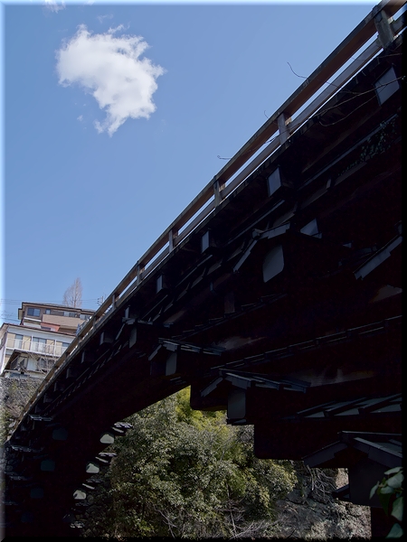 ・ 日本三奇橋よろしく独特な刎ね木部分を見上げる