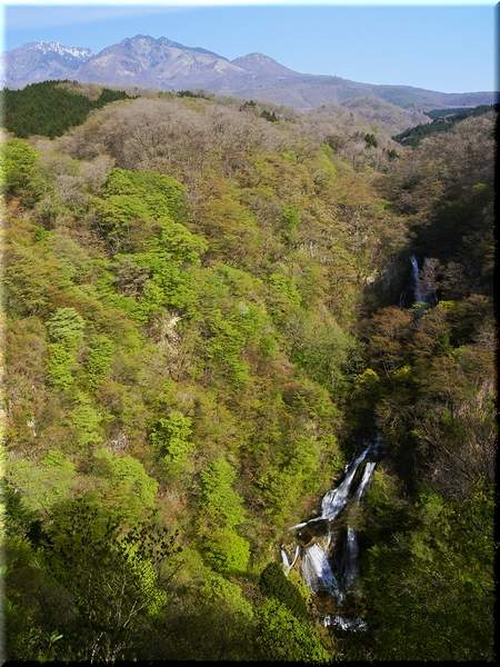 ・ 滝音を聴きながら女峰山とのコラボ景観美を楽しむ