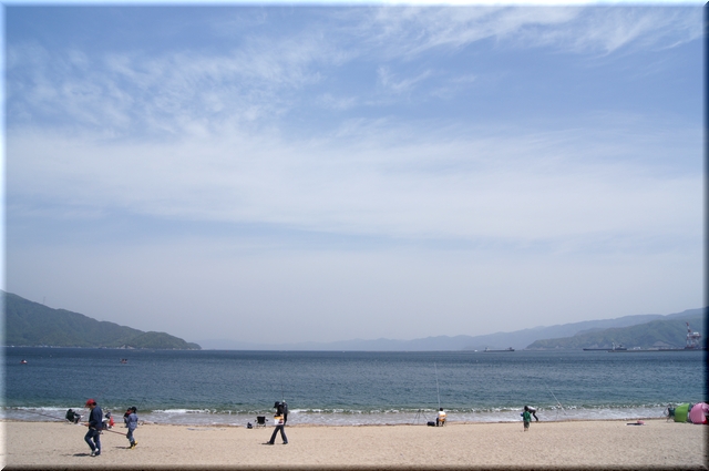 ・ 夏の到来を待ち侘びる敦賀湾の砂浜を散策する