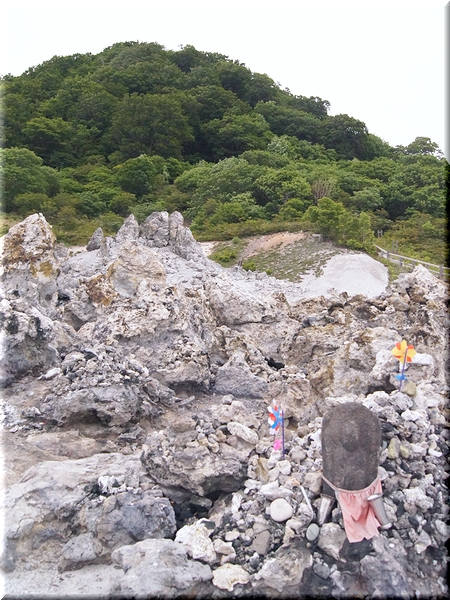・ 硫黄臭の漂う無限地獄の前に立って地蔵山を眺める