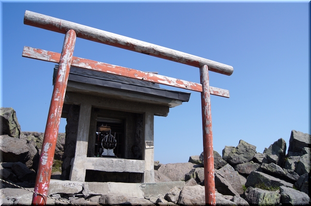 ・ 山頂にある 一等三角点(1625m) & 岩木山神社奥宮