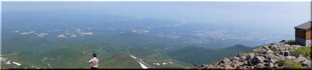 ・ 山頂に立って鳥海山越しに白神山地を遠望する