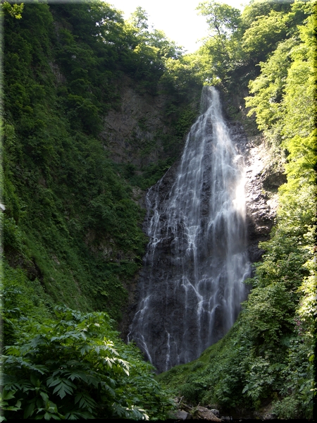 白神山地を源流とする赤石渓流にかかる落差85mの滝。