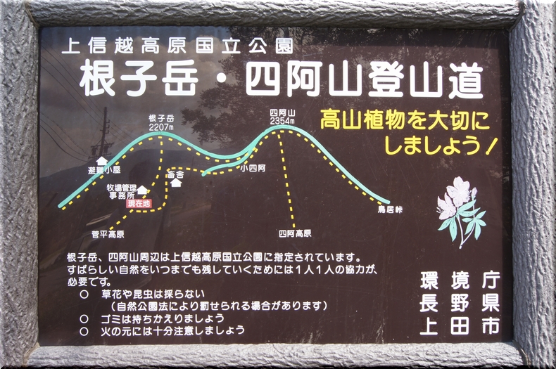 四阿山山頂へ、さらに「尾根縦走コース(2.5km)」で根子岳山頂を経由、