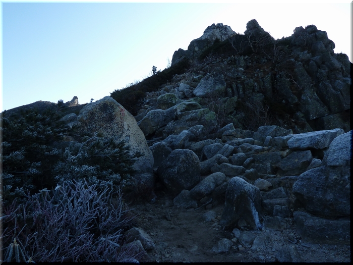 ・ リベンジ成功まで少しと迫る山頂&五丈岩を見上げる