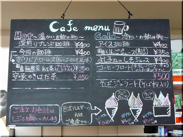 ・ そばジェラート(ダブル・塩キャラメル&抹茶) ¥400