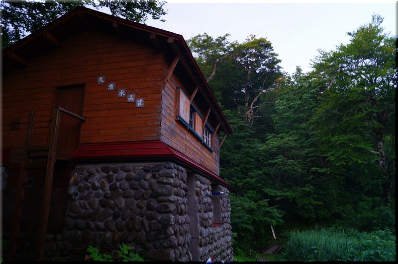 登山口からすぐに「大清水避難小屋」がお出まし。