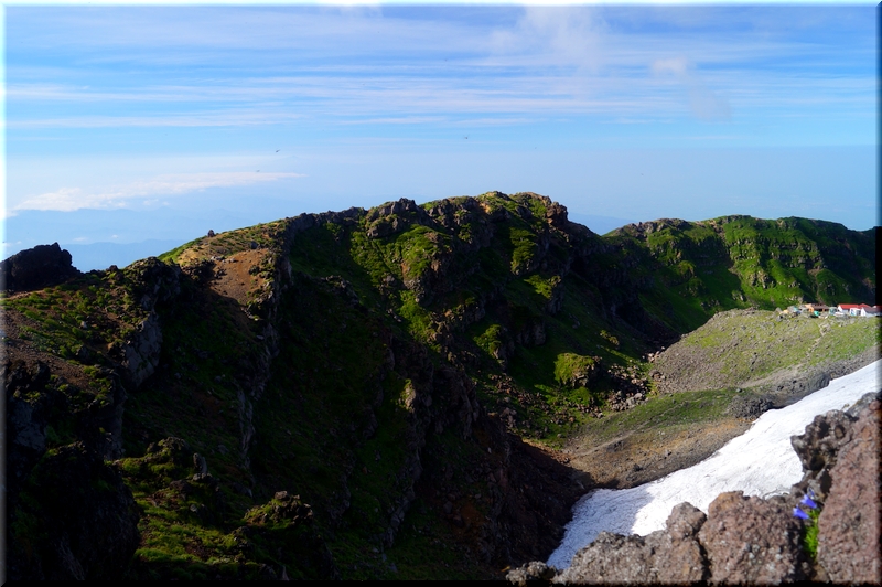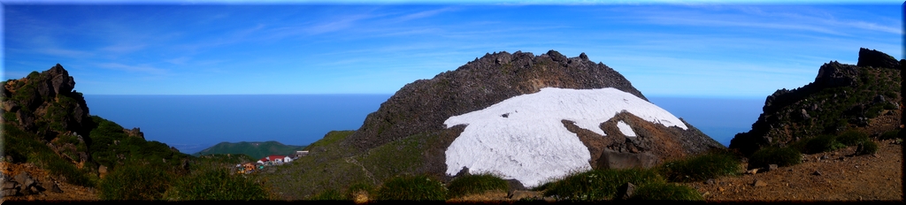 切れ落ちた火口壁の遠くに「月山」を浮かべるのみ。